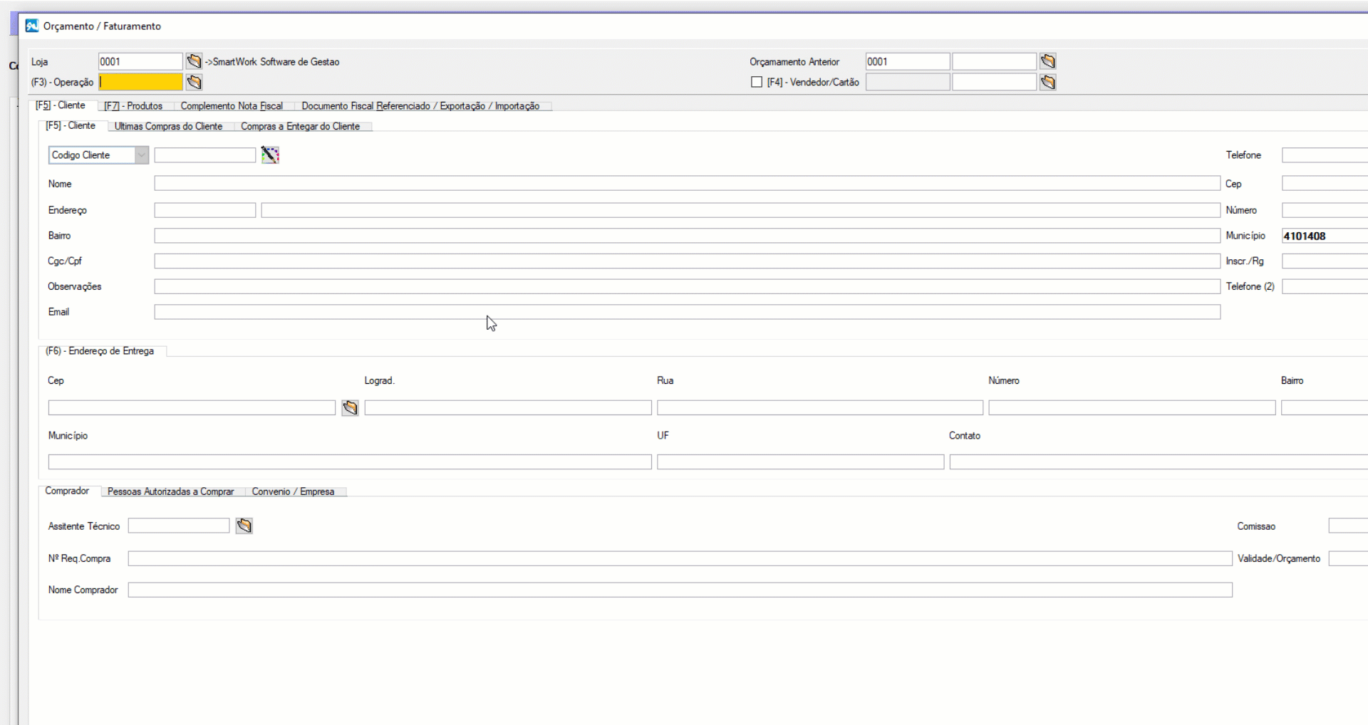 6 — Informe o código do cliente ou tecle a tecla F2 para buscar pelo nome do cliente, após realizar a busca pelo cliente tecle a tecla ENTER para confirmar e assim carregar as informações do cliente