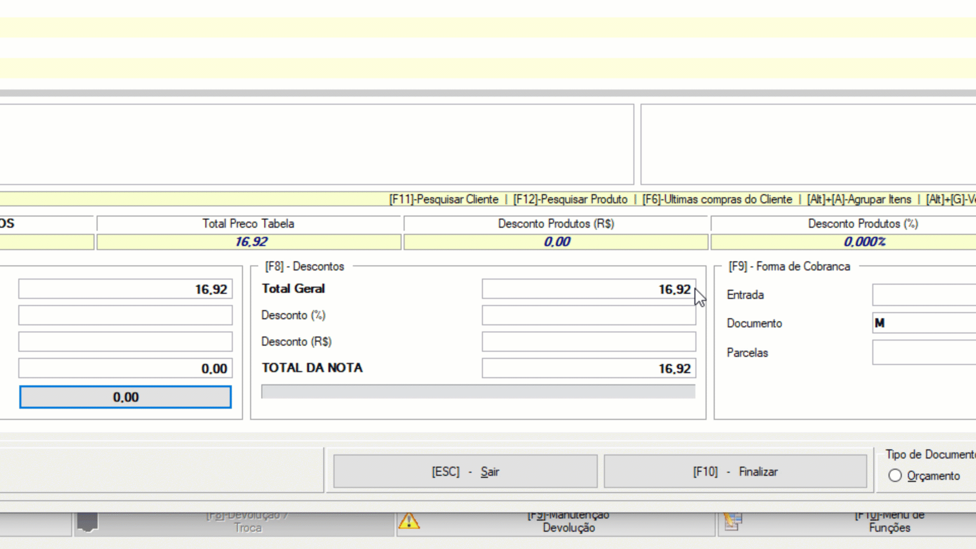 8 — Informe no menu [F8]-Desconto, os desconto que deseja realizar sobre o valor total da venda